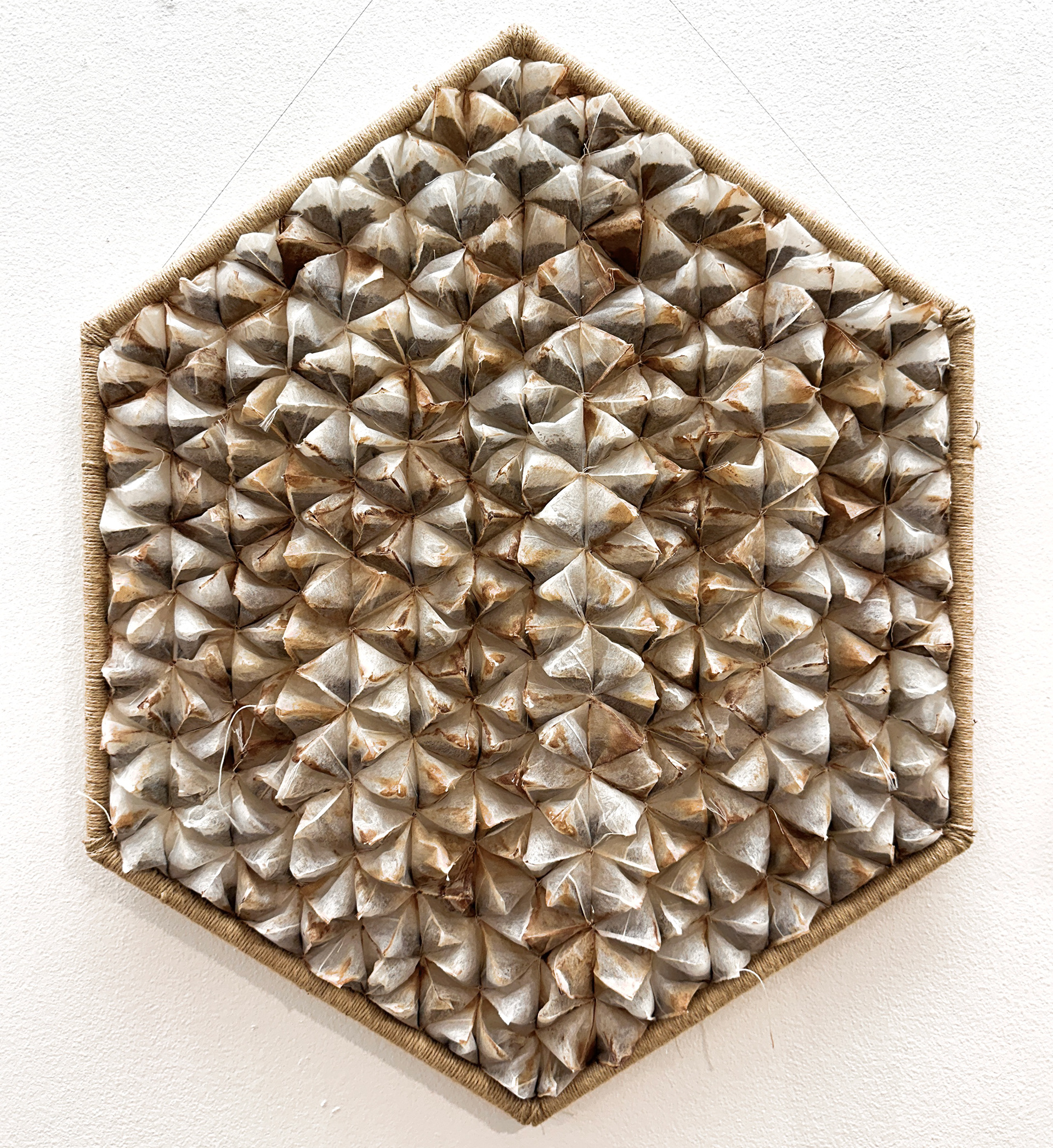 Teknikk: Tekstil/objekt (teposer, tråd, jute, tre)