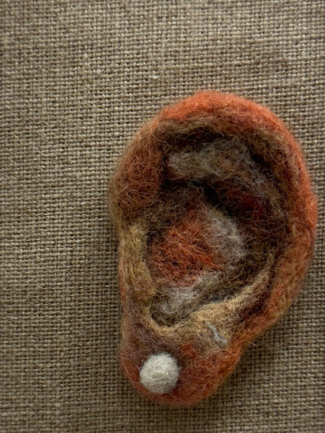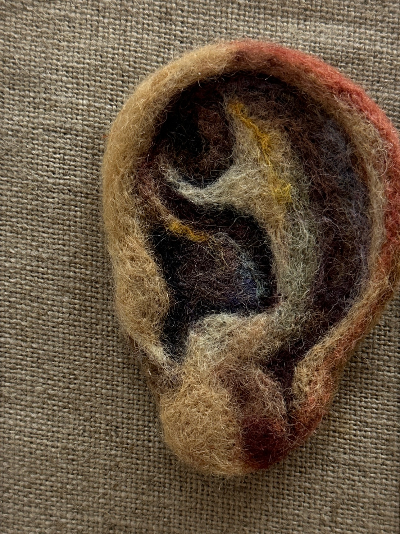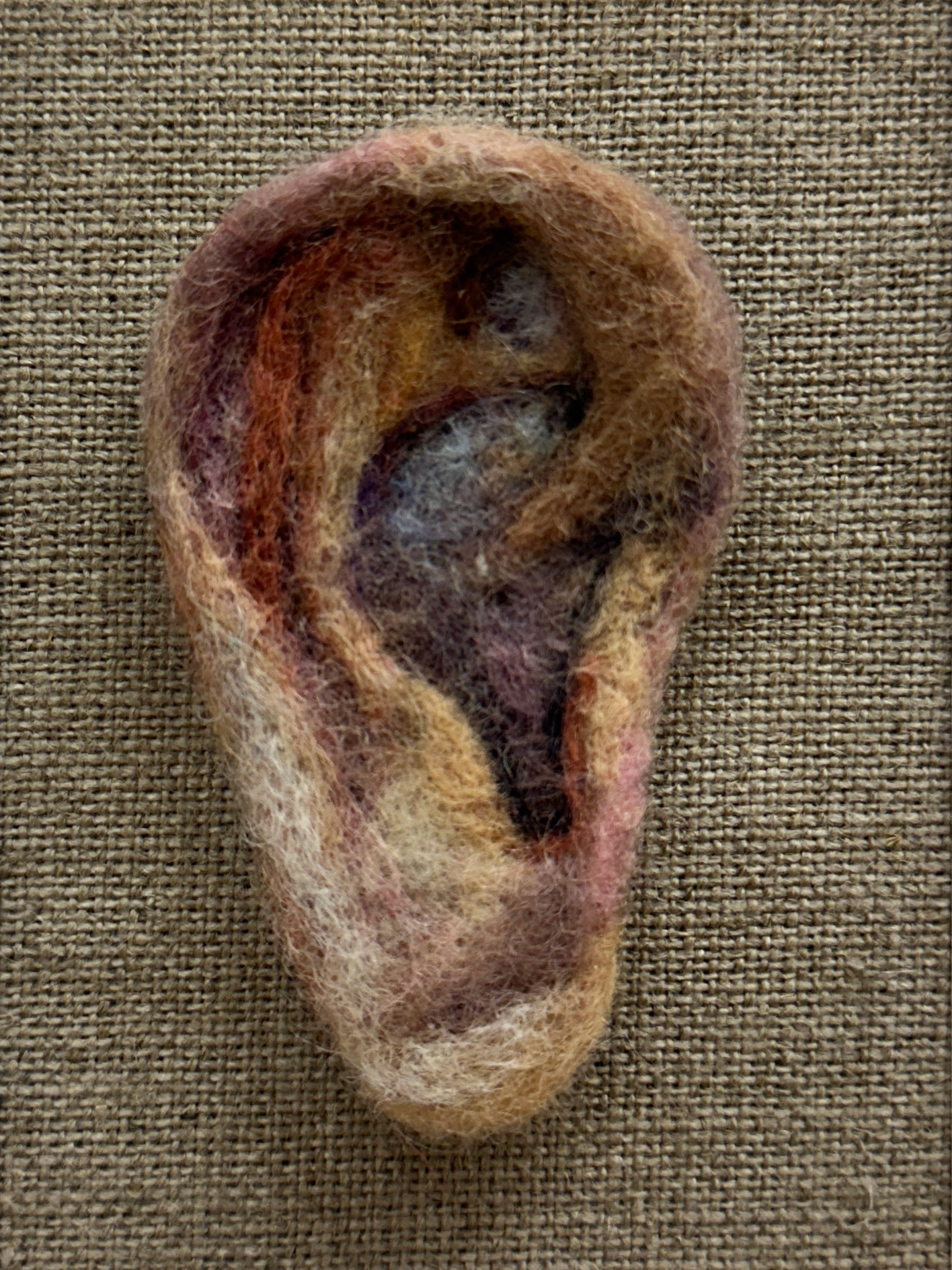 «Lån meg et øre» er en ny serie skulpturelle tekstile arbeider. I vår stadig mer urolige verden hvor vi beveger oss vekk fra storfamilien er det mange av oss som opplever ensomhet. Det er ikke lenger gitt at vi har noen å betro oss til, noen å dele store og små øyeblikk med.